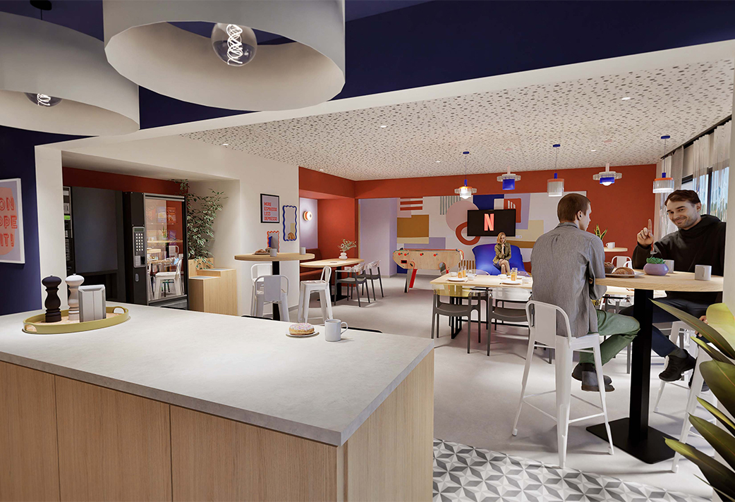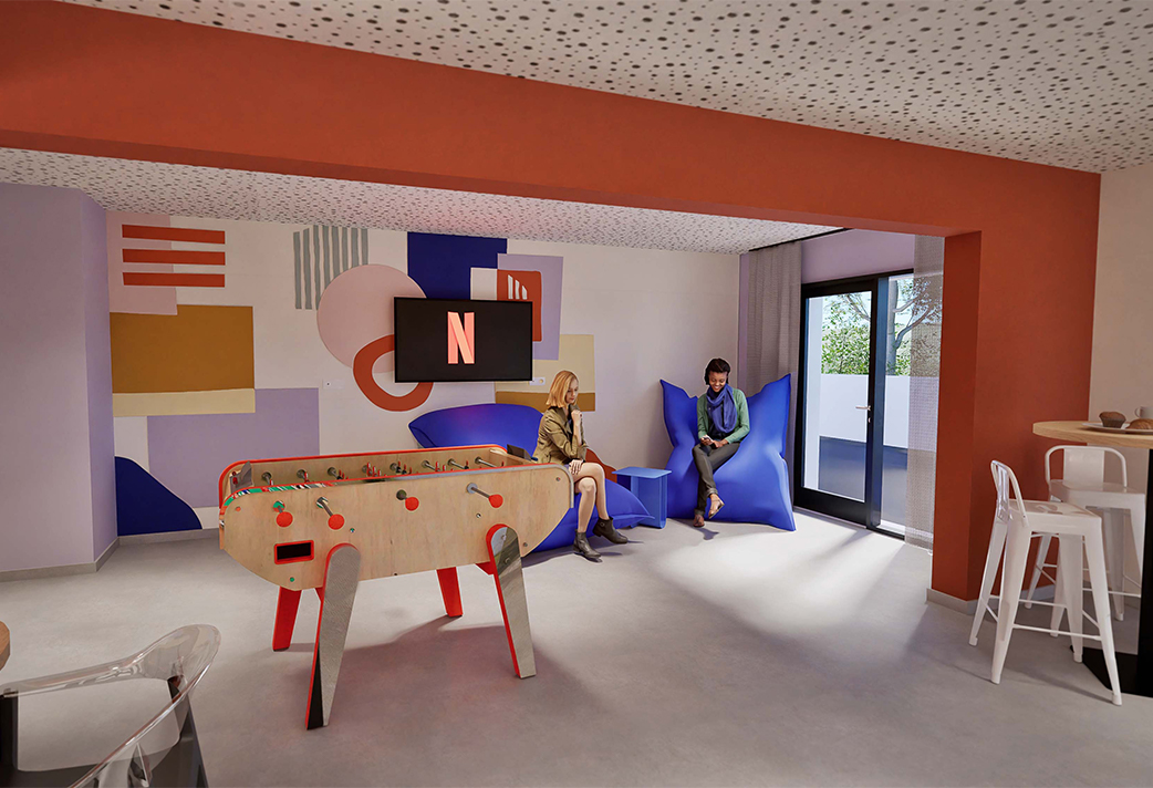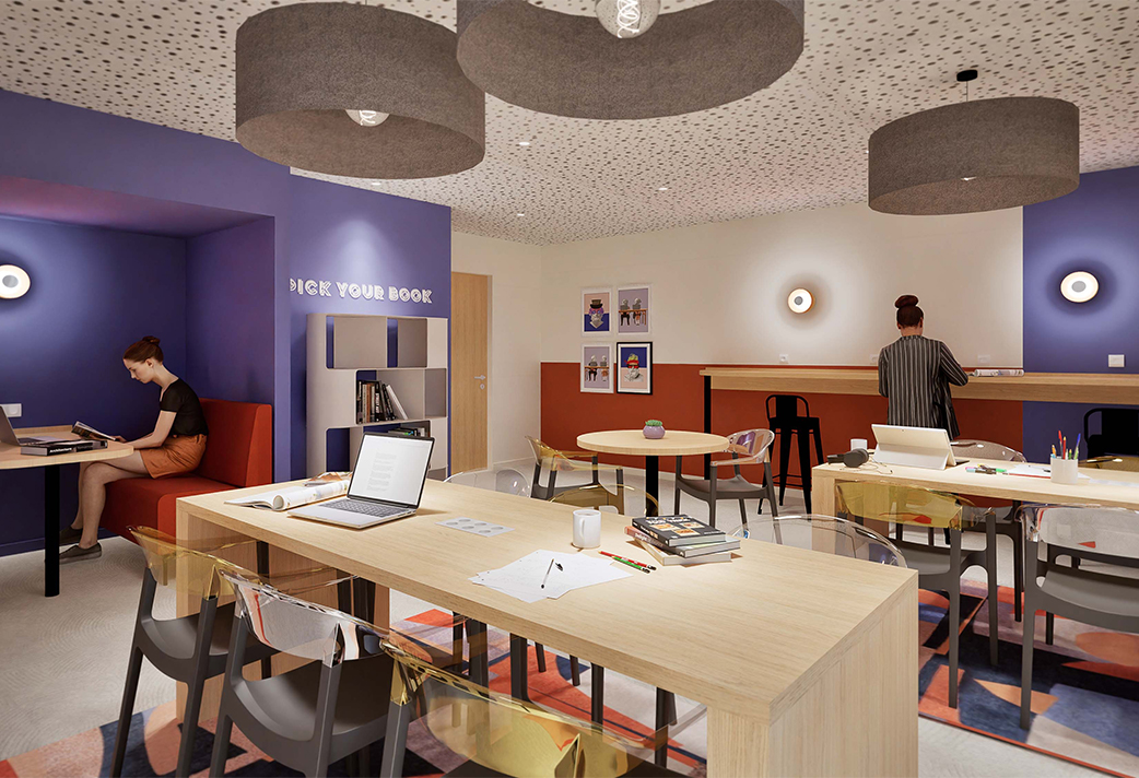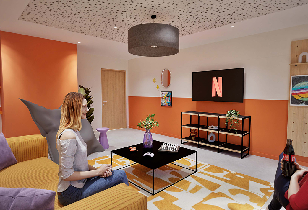 Discover the Odalys Campus residence in Evry, designed to make you feel at home from day one. With its green façades and modern spaces, this contemporary building offers you an ideal living environment to balance studies, relaxation, and socializing. Our common areas on the ground floor warmly welcome you: a cafeteria with a foosball table and vending machines, a fitness room to let off steam, a game room for entertainment, and a study room to help you focus. Need some fresh air? The terrace on the fourth floor is perfect for relaxing moments outdoors. And to simplify your daily life, you also have access to a bike storage and a laundry room.