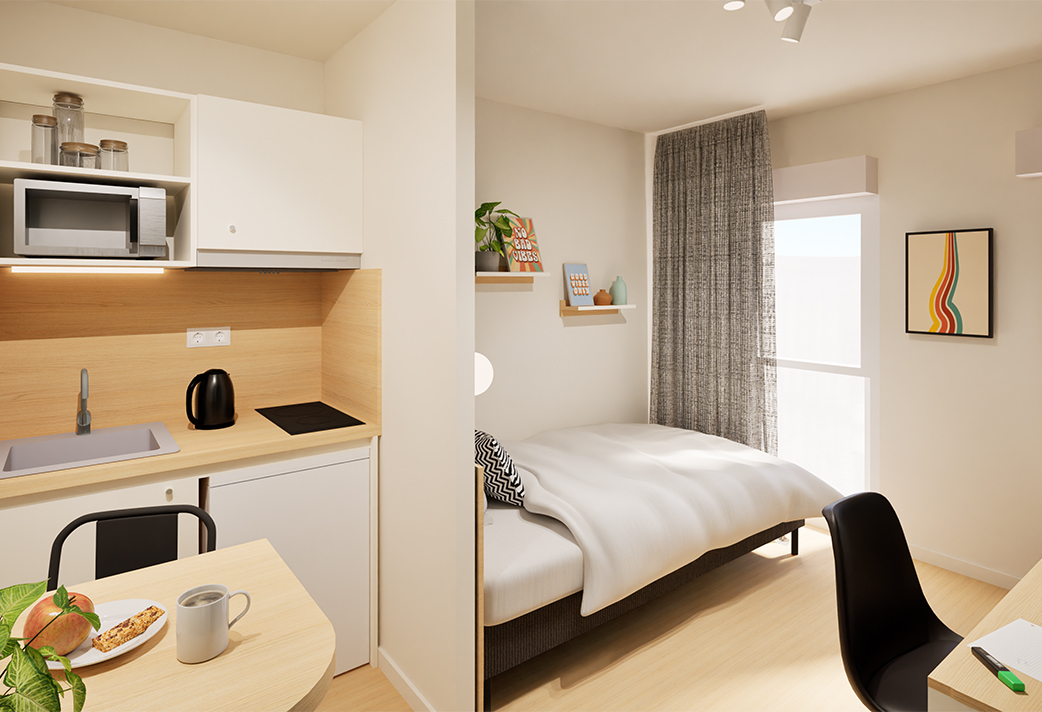 Choose your cozy nest among our 104 rooms designed for comfort and functionality. Each accommodation is ready to welcome you with everything you need to study, relax, and enjoy your independence.